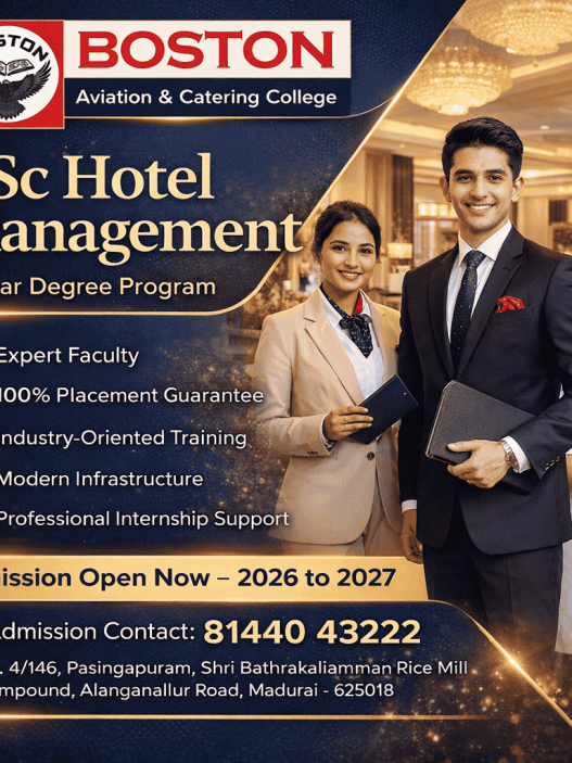 By choosing our Hotel Management course in Madurai, students gain access to expert faculty, well-equipped labs, and internship opportunities at reputed hotels.
